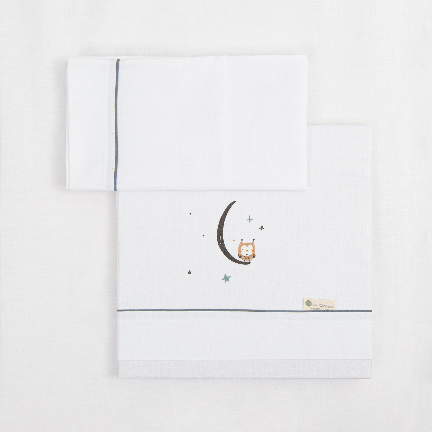 Sabana con embozo, bajera ajustable y funda de almohada de algodón 100% para coche o moises 40x80cm.